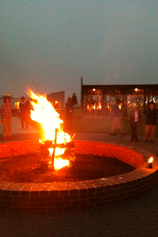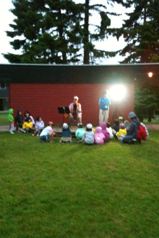 帰ってきてBBQ後には放送があって、広場でギターのお兄さんが歌うとか。