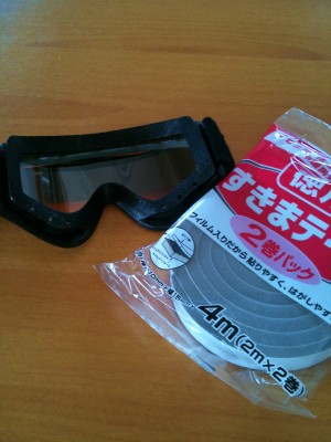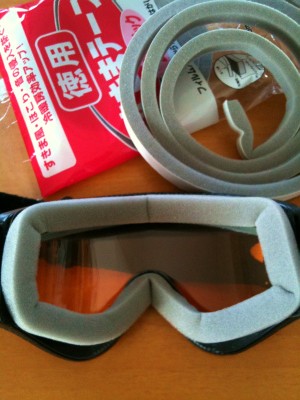 大昔のゴーグルを出してみたらスポンジ部分がボロボロと取れてくる。